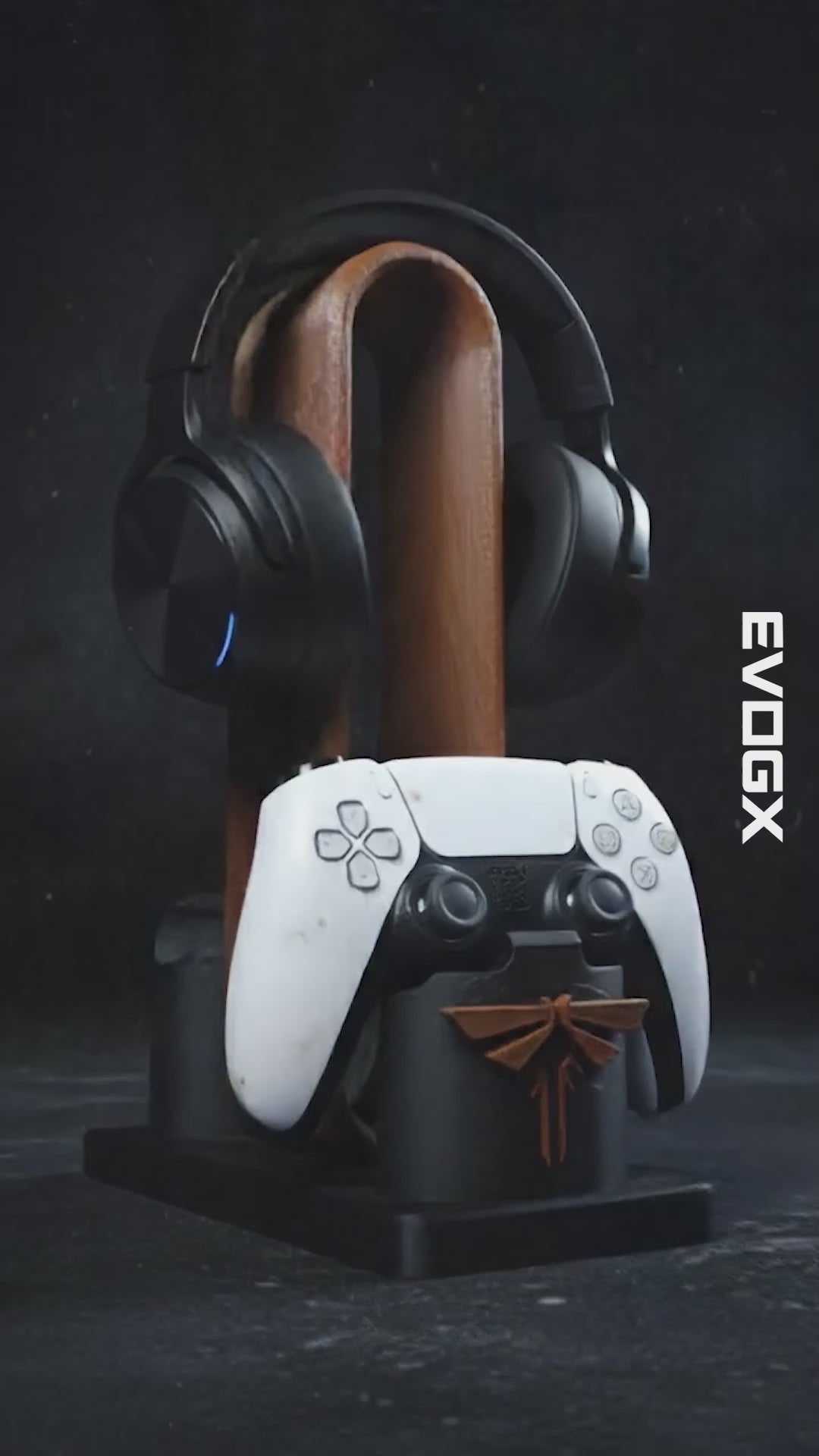 The Last of Us evreninden ilham alan bu özel üretim EVOGX PlayStation & Xbox oyun kolu ve kulaklık standı, oyuncu odanı post-apokaliptik bir sahneye dönüştürür.